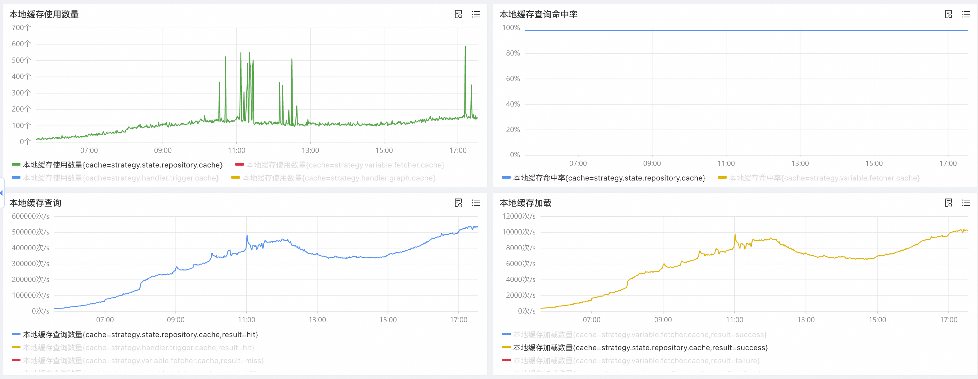 ![本地缓存的使用数量、查询命中率、查询量级、加载量级]()